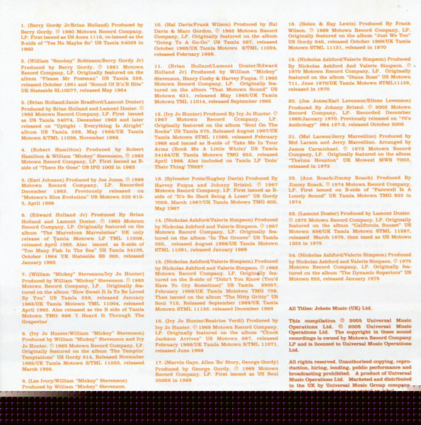 Лейбл: Motown – 982 030-7 Tamla Motown – 982 030-7 Universal Music Catalogue – 982 030-7
