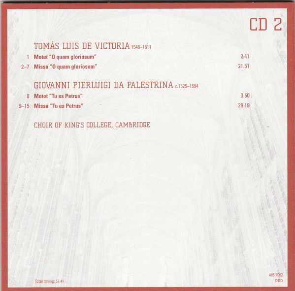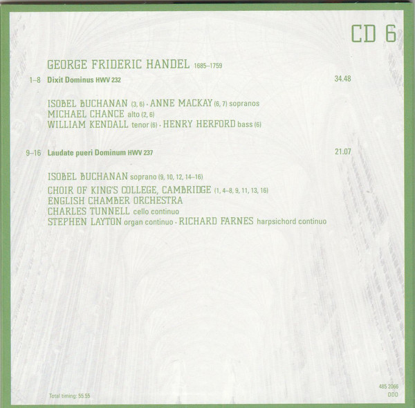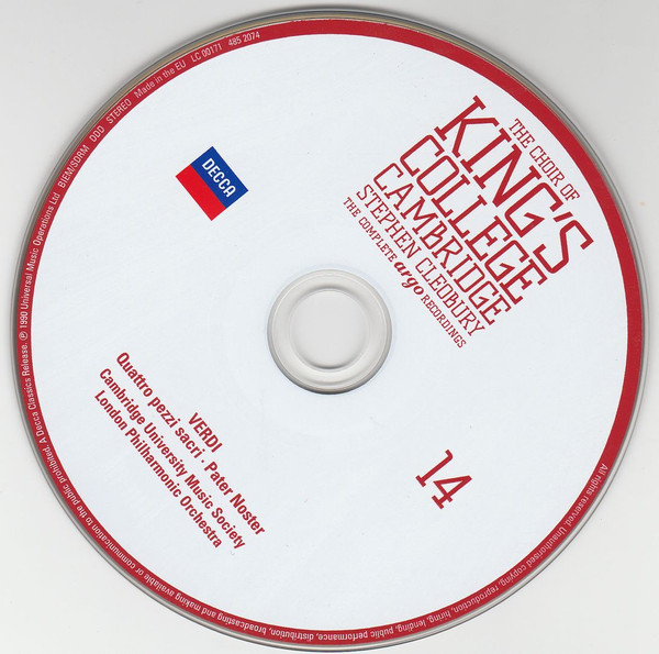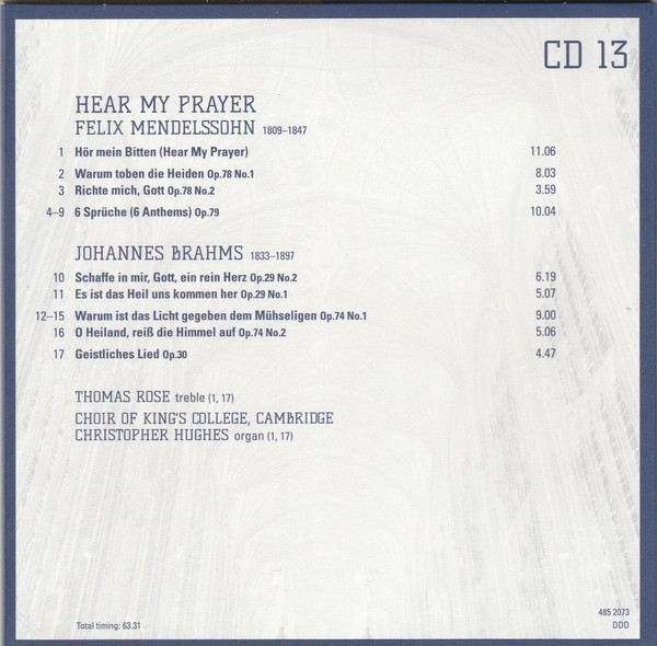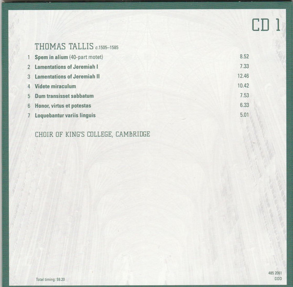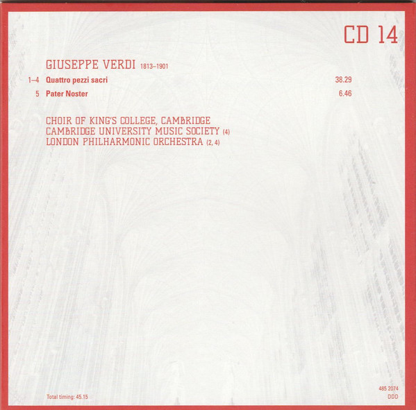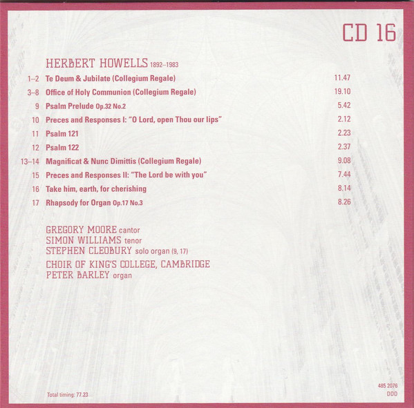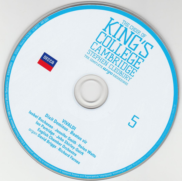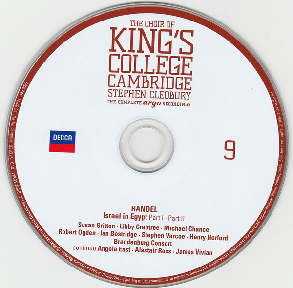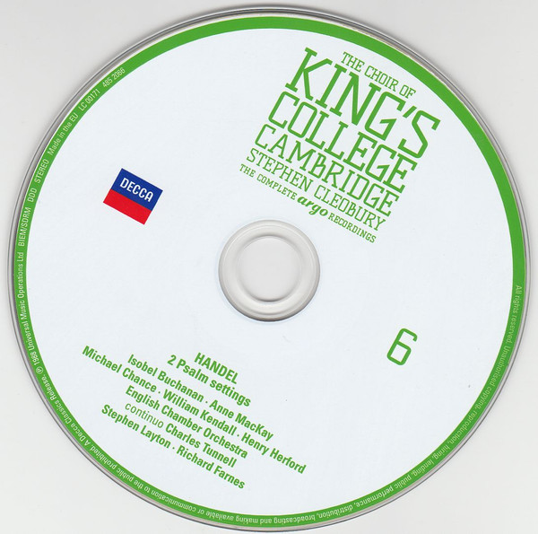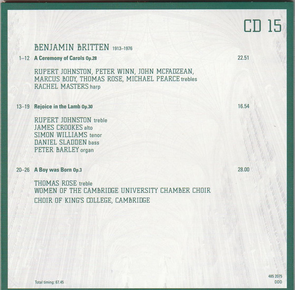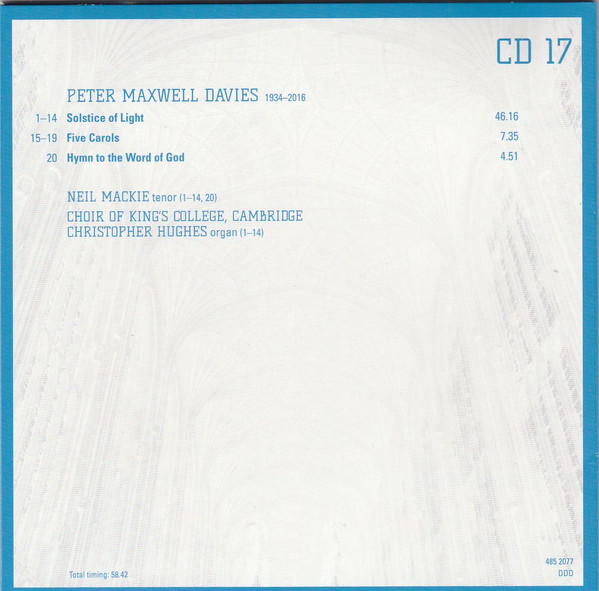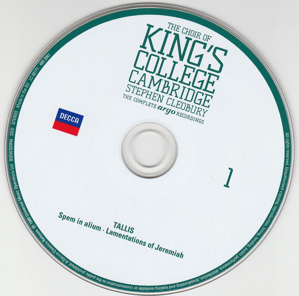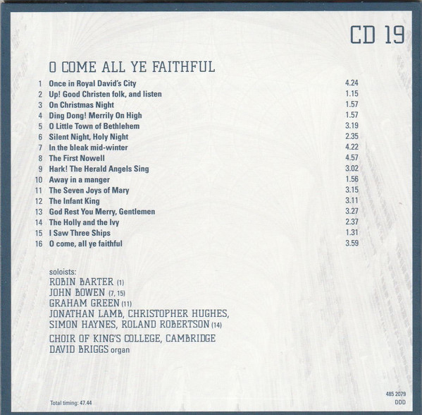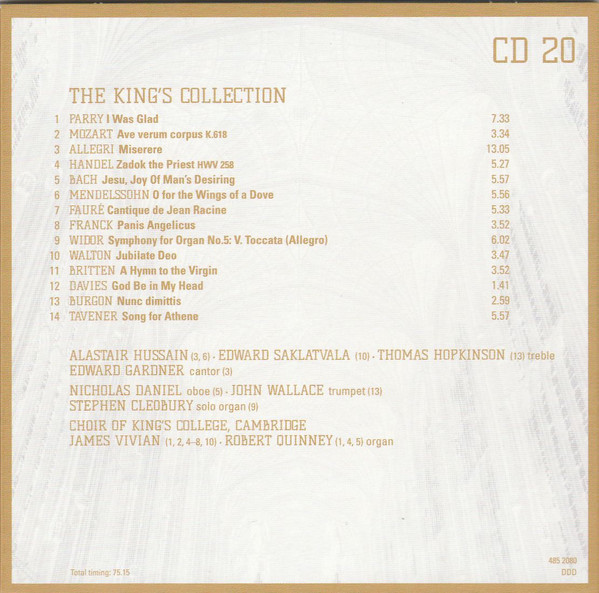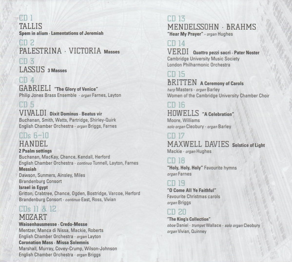 - Choir tracks 1-1 to 4-1, 4-3, 4-5 to 4-8, 5-1, 5-2, 5-7, 5-9 to 5-12, 5-14, 5-16, 5-17, 5-19, 6-1, 6-4 to 6-9, 6-11, 6-13, 6-16 to 20-14 – The King's College Choir Of Cambridge