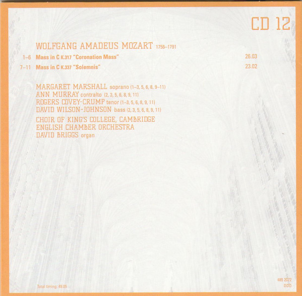 Bass Vocals – David Wilson-Johnson Composed By – Wolfgang Amadeus Mozart Organ – David Briggs (5) Tenor Vocals – Rogers Covey-Crump |