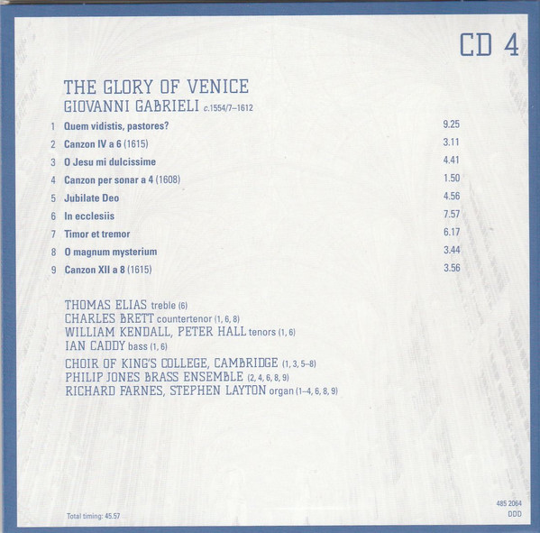 Bass Vocals – Ian Caddy Composed By – Giovanni Gabrieli Countertenor Vocals – Charles Brett Ensemble – Philip Jones Brass Ensemble Organ – Richard Farnes Organ – Stephen Cleobury Tenor Vocals – Peter Hall (8) Tenor Vocals – William Kendall Treble Vocals – Thomas Elias |