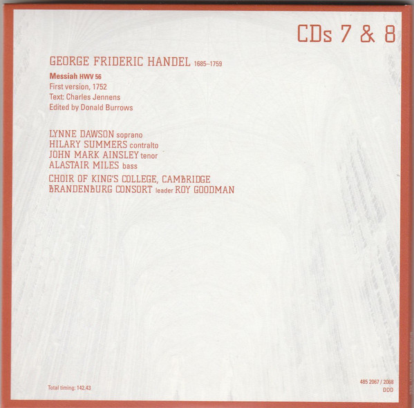 Bass Vocals – Alastair Miles Composed By – Georg Friedrich Händel Contralto Vocals – Hilary Summers Ensemble – Brandenburg Consort Leader [Brandenburg Consort] – Roy Goodman Score Editor [Edited By] – Donald Burrows Soprano Vocals – Lynne Dawson Tenor Vocals – John Mark Ainsley Text By – Charles Jennens |