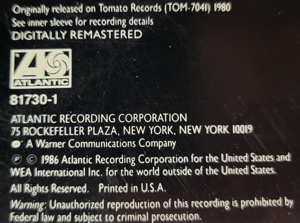 | Лейбл: | Atlantic – 7 81730-1 Atlantic – 81730-1 |