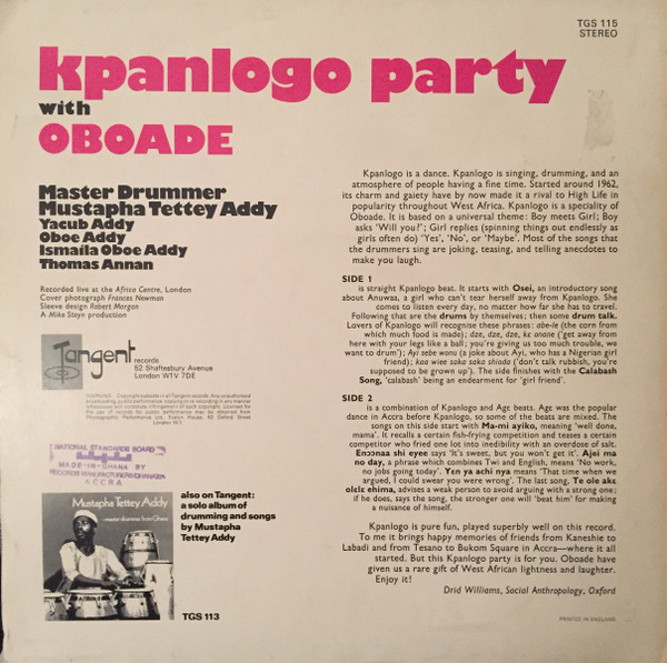 - Percussion – Obo Addy