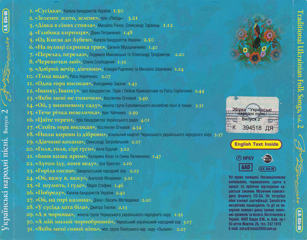 Various – Українські Народні Пісні, Випуск 2 = Ukrainian Folk Songs, Vol. 2