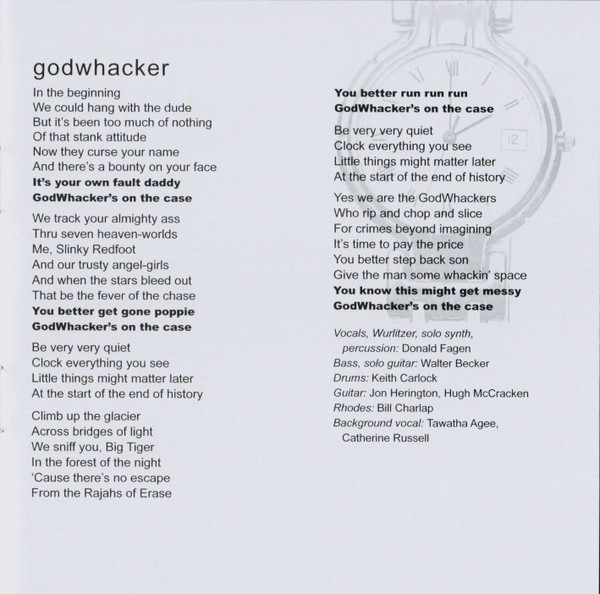 Backing Vocals – Carolyn Leonhart Bass, Guitar, Soloist – Walter Becker Drums – Keith Carlock Electric Piano [Rhodes] – Ted Baker Guitar – Hugh McCracken Guitar – Jon Herington Percussion – Gordon Gottlieb Vocals, Piano, Organ – Donald Fagen |