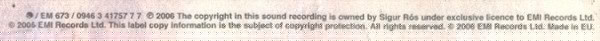 - Phonographic Copyright (p) – Sigur Rós