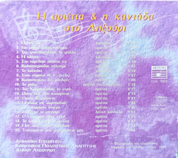 - Research [Έρευνα - Επεξεργασία], Liner Notes [Σχόλια] – Γεράσιμος Γαλανός