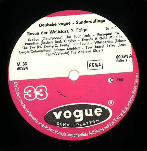 | Лейбл: | Vogue Schallplatten – 60394 |