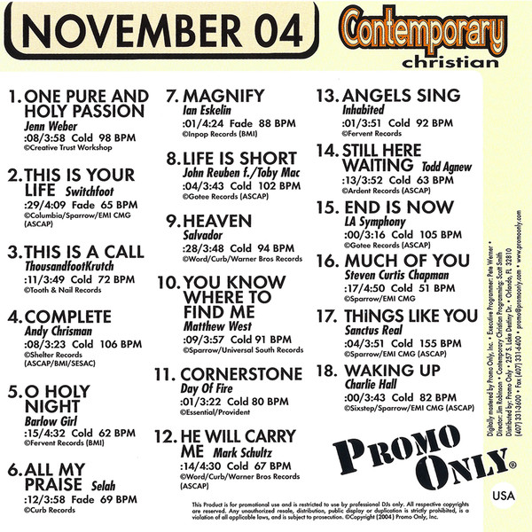 Various – Promo Only Contemporary Christian: November 2004