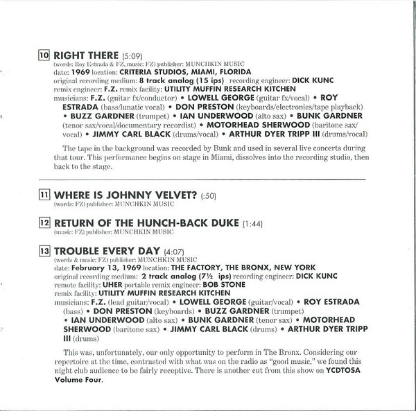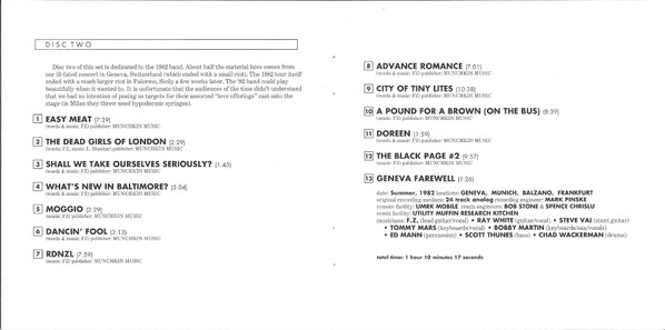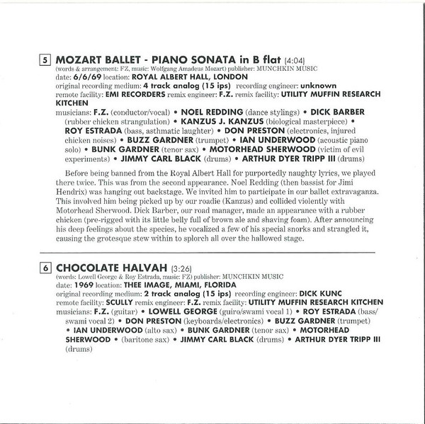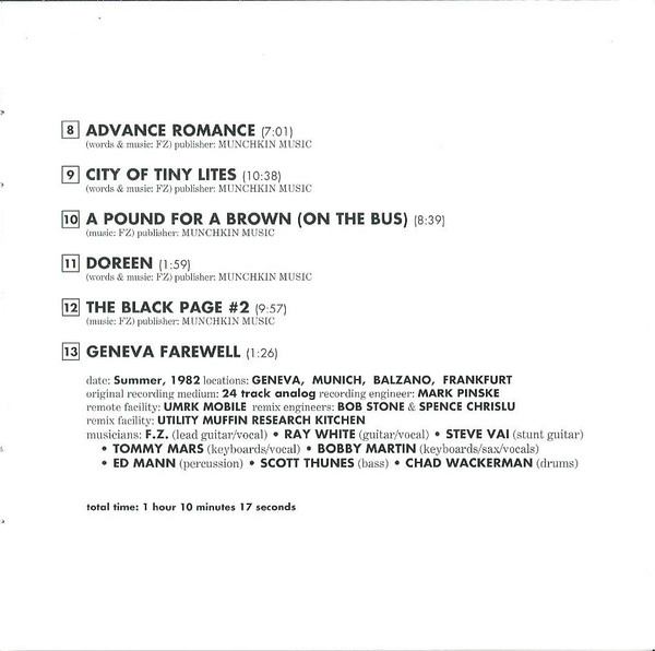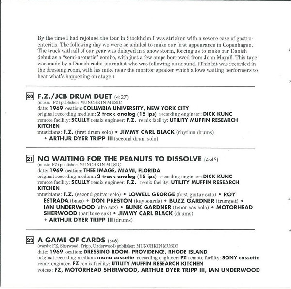 - Engineer [Recording] tracks 1-22 – Frank Zappa