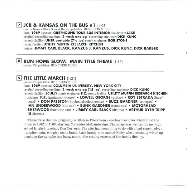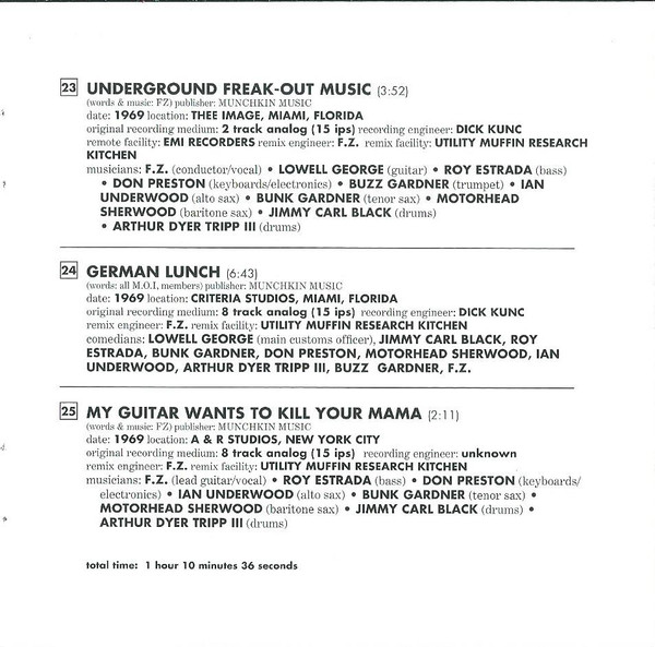- Engineer [Remix] tracks 1-1 to 1-6, 1-8 to 1-10, 1-14, 1-16, 1-18, 1-20 to 1-25 – Frank Zappa