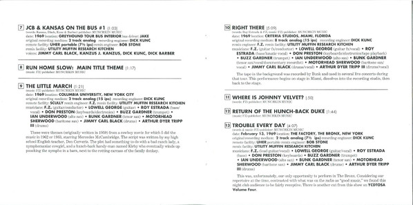 - Engineer [Recording] tracks 1-2, 1-3, 1-6 to 1-16, 1-20, 1-21, 1-23, 1-24 – Dick Kunc