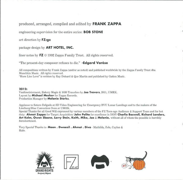 - Producer, Arranged By, Compiled By, Edited By – Frank Zappa