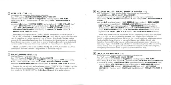 Baritone Saxophone – Motorhead Sherwood Bass, Voice [Asthmatic Laughter] – Roy Estrada Conductor, Vocals – Frank Zappa Drums – Art Tripp Drums – Jimmy Carl Black Electronics, Noises [Injured Chicken Noises] – Don Preston Music By – Wolfgang Amadeus Mozart Other [Biological Masterpiece] – Неизвестный #1160561 Other [Dance Stylings] – Noel Redding Other [Rubber Chicken Strangulation] – Dick Barber Piano [Acoustic - Solo] – Ian Underwood Tenor Saxophone – Bunk Gardner Trumpet – Buzz Gardner Words By – Frank Zappa |