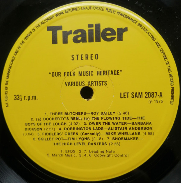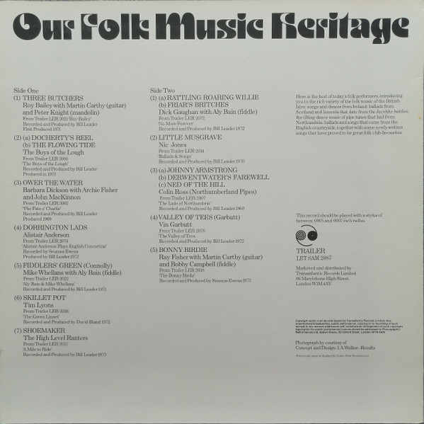 - Recorded By tracks A4, B5 – Seamus Ewens