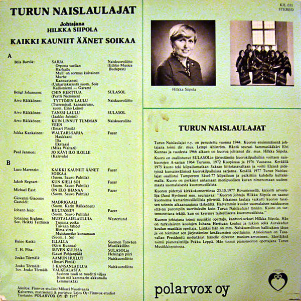 Composed By – Heino Kaski Composed By – Luca Marenzio Lyrics By – Kirsi Kunnas Lyrics By [Suom.] – Sauvo Puhtila |