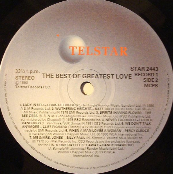 - Copyright (c) – Telstar Records Plc