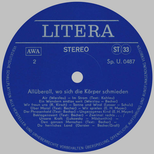 Лейбл: AMIGA – Sp.U. 0486 LITERA – Sp. U. 0487 ETERNA – Sp.U. 085