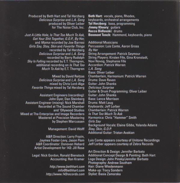 Bass – Oliver Leiber Chamberlin, Harmonium – Patrick Warren Drums – David Raven Guitar – John Shanks Mixed By – Chris Lord-Alge Producer – Oliver Leiber Recorded By – Barry Rudolph Written-By – Beth Hart |