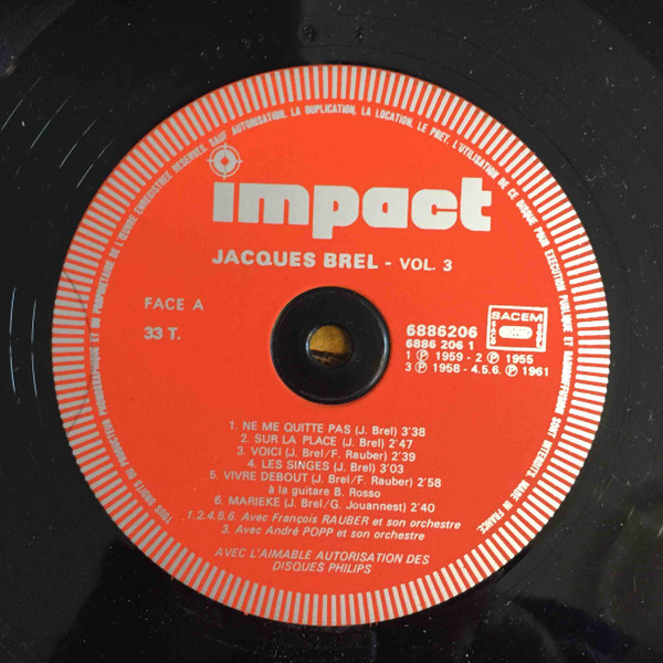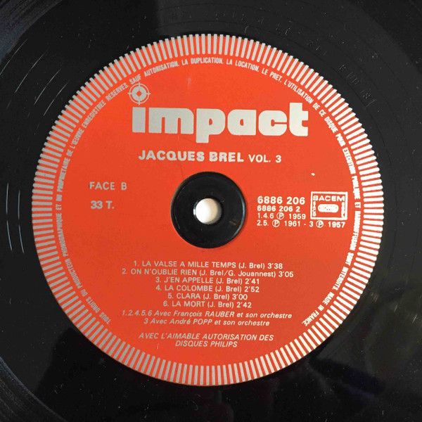 Jacques Brel André Popp Et Son Orchestre Written By – Неизвестный #0 Written-By – François Rauber Written-By – Jacques Brel |