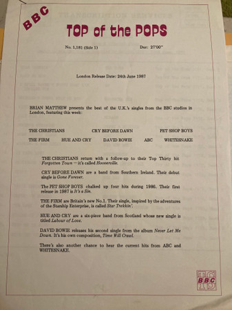 Лейбл: BBC Transcription Services – 158101-S