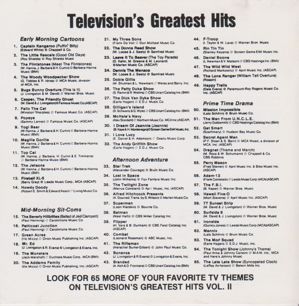Various – Television's Greatest Hits (65 TV Themes! From The 50's And 60's)