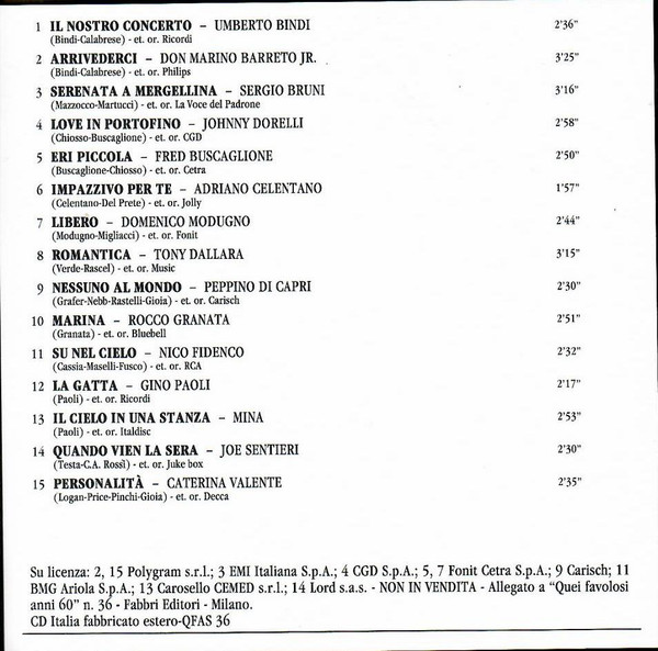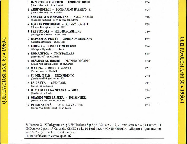 Various – Quei Favolosi Anni '60 ● 1960 - 1