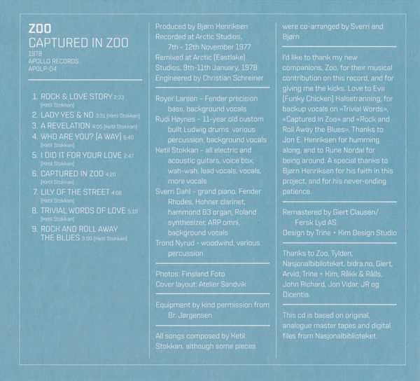 - Grand Piano, Piano [Fender Rhodes], Clavinet [Hohner], Organ [Hammond B3], Synthesizer [Roland], Synth [ARP Omni], Backing Vocals [Background Vocals] – Sverri Dahl