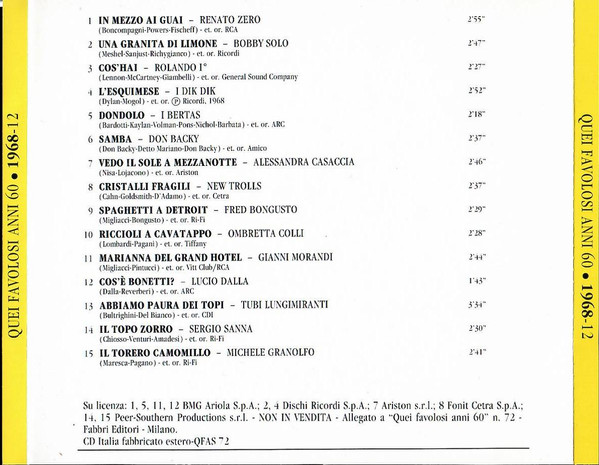 Various – Quei Favolosi Anni '60 ● 1968 - 12