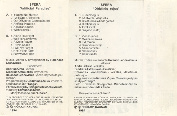 - Keyboards, Lyrics By, Music By, Percussion, Vocals, Arranged By – Rolandas Leonavičius