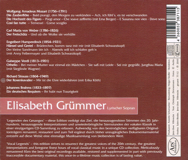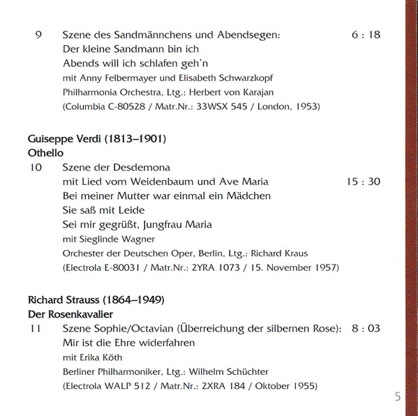 - Soprano Vocals – Elisabeth Grümmer