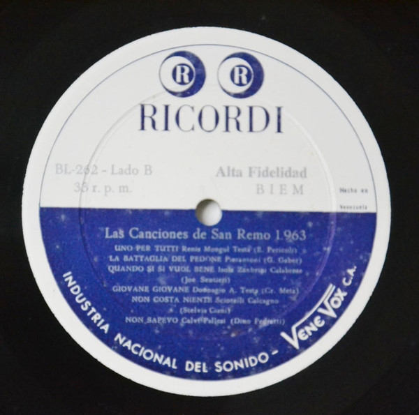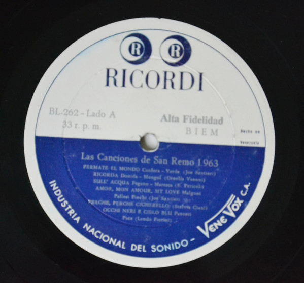 Лейбл: Ricordi – BL - 262 Industria Nacional Del Sonido Venevox C.A. – BL-262