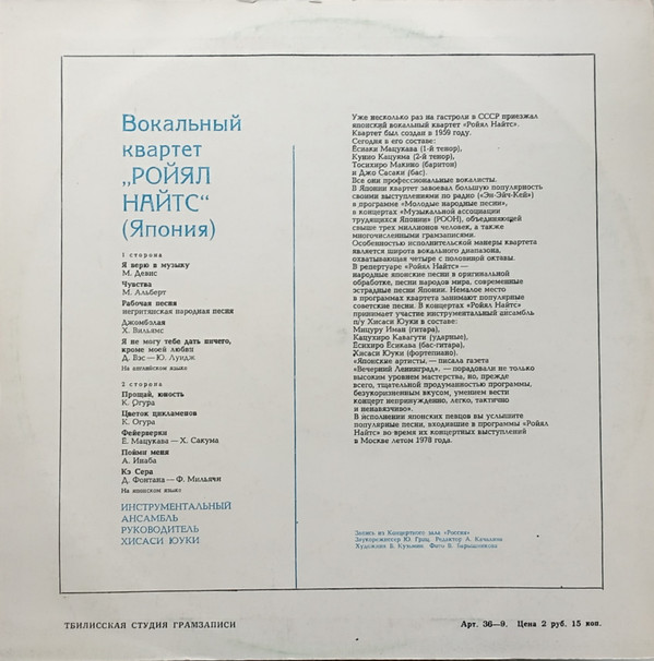 - Pressed By – Тбилисская Студия Грамзаписи