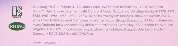 - Manufactured By – Rhino Entertainment Company