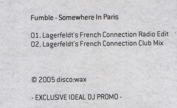 | 2 | Somewhere In Paris (Lagerfedlt's French Connection Mix) |