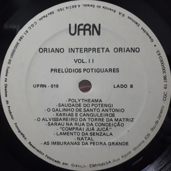 Oriano De Almeida – Oriano Interpreta Oriano - Vol. II - Prelúdios Potiguares
