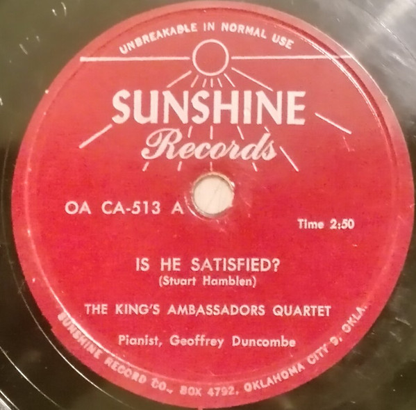 The King's Ambassadors Quartet – Is He Satisfied? / I've Been With Jesus