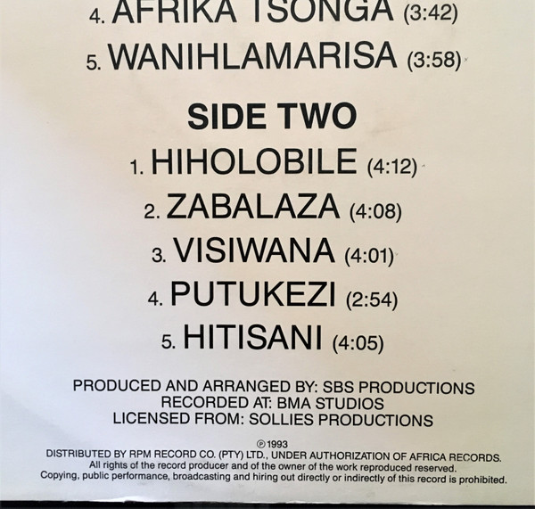 - Distributed By – RPM Record Company (Pty) Ltd.