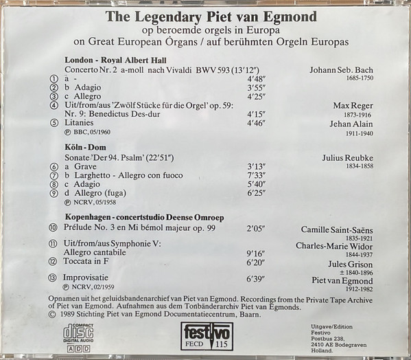 Piet Van Egmond – The Legendary Piet Van Egmond On Great European Organs