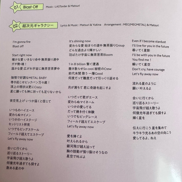 Arranged By – Gaku Taura Arranged By – Matsuri (4) Lyrics By, Music By – Matsuri (4) Lyrics By, Music By – Yukina (6) |