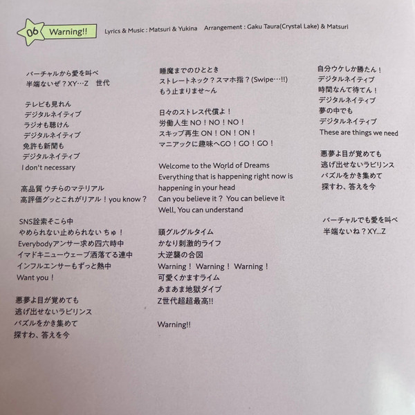 Arranged By – Matsuri (4) Arranged By – Monjoe Lyrics By, Music By – Matsuri (4) Lyrics By, Music By – Yukina (6) |