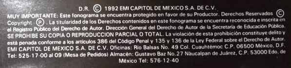 - Manufactured By – EMI Capitol De Mexico, S.A. De C.V.