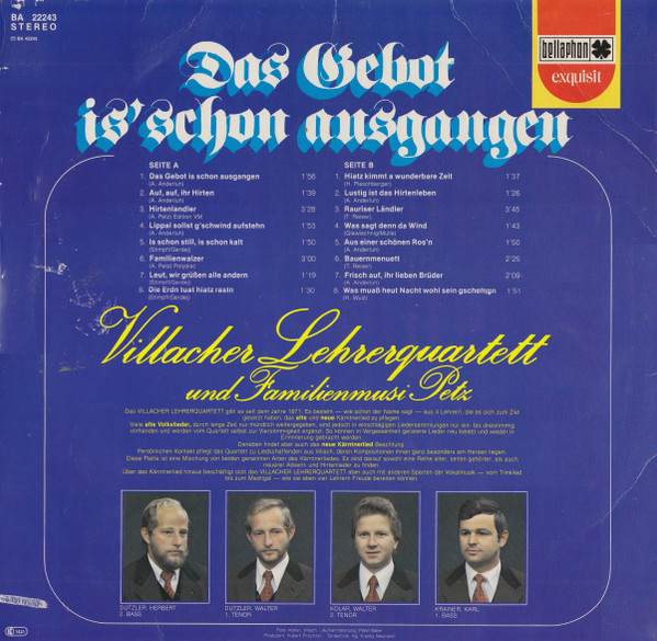 Villacher Lehrerquartett – Das Gebot Is' Schon Ausgangen