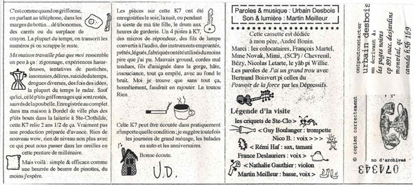 - Written-By tracks All except B5 and B8 – Urbain Desbois