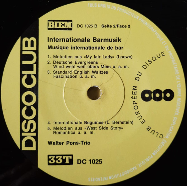 Walter-Pons-Trio – Internationale Barmusik = Musique Internationale De Bar