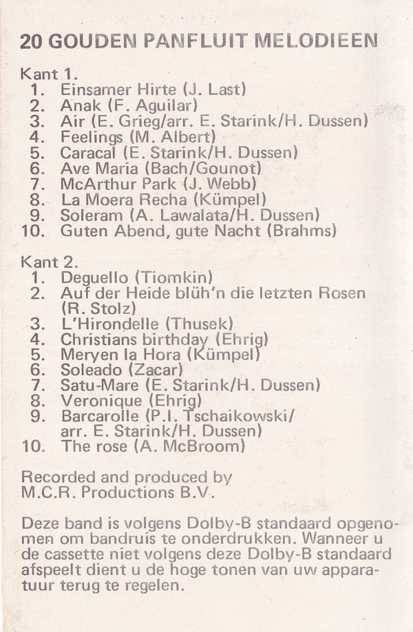 Неизвестный исполнитель – 20 Gouden Panfluit Melodieën