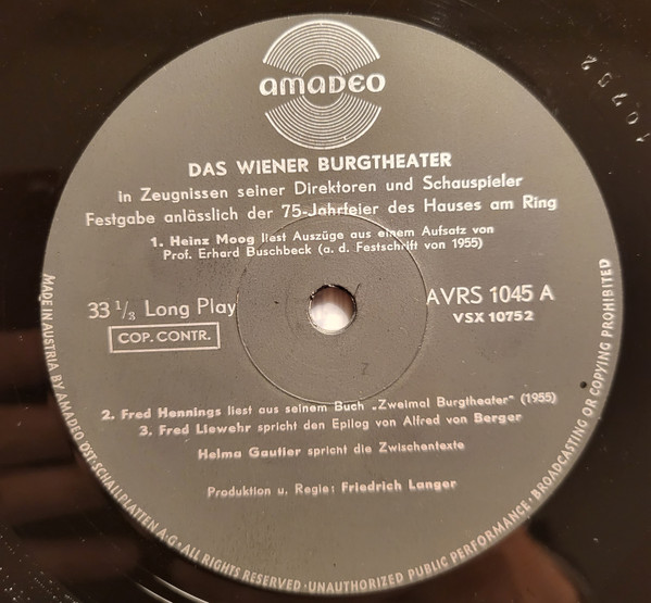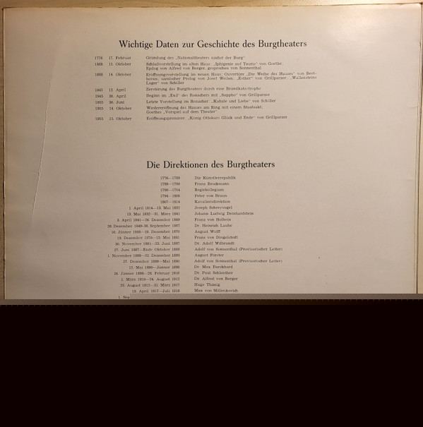 Various – Das Wiener Burgtheater In Zeugnissen Seiner Direktoren Und Schauspieler