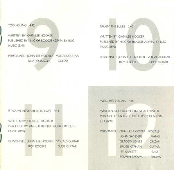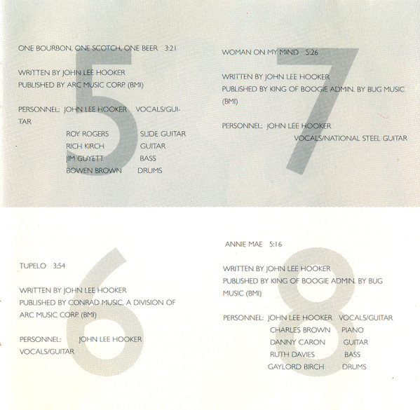 - Written-By tracks 1, 2, 4 to 11 – John Lee Hooker