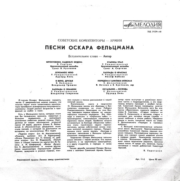Песни Оскара Фельцмана