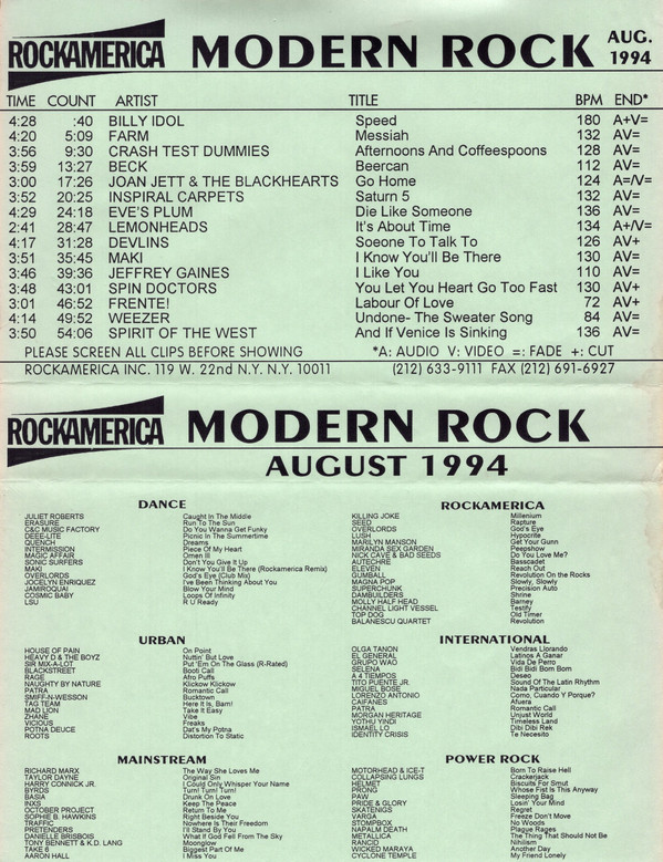 Various – Modern Rock August 1994